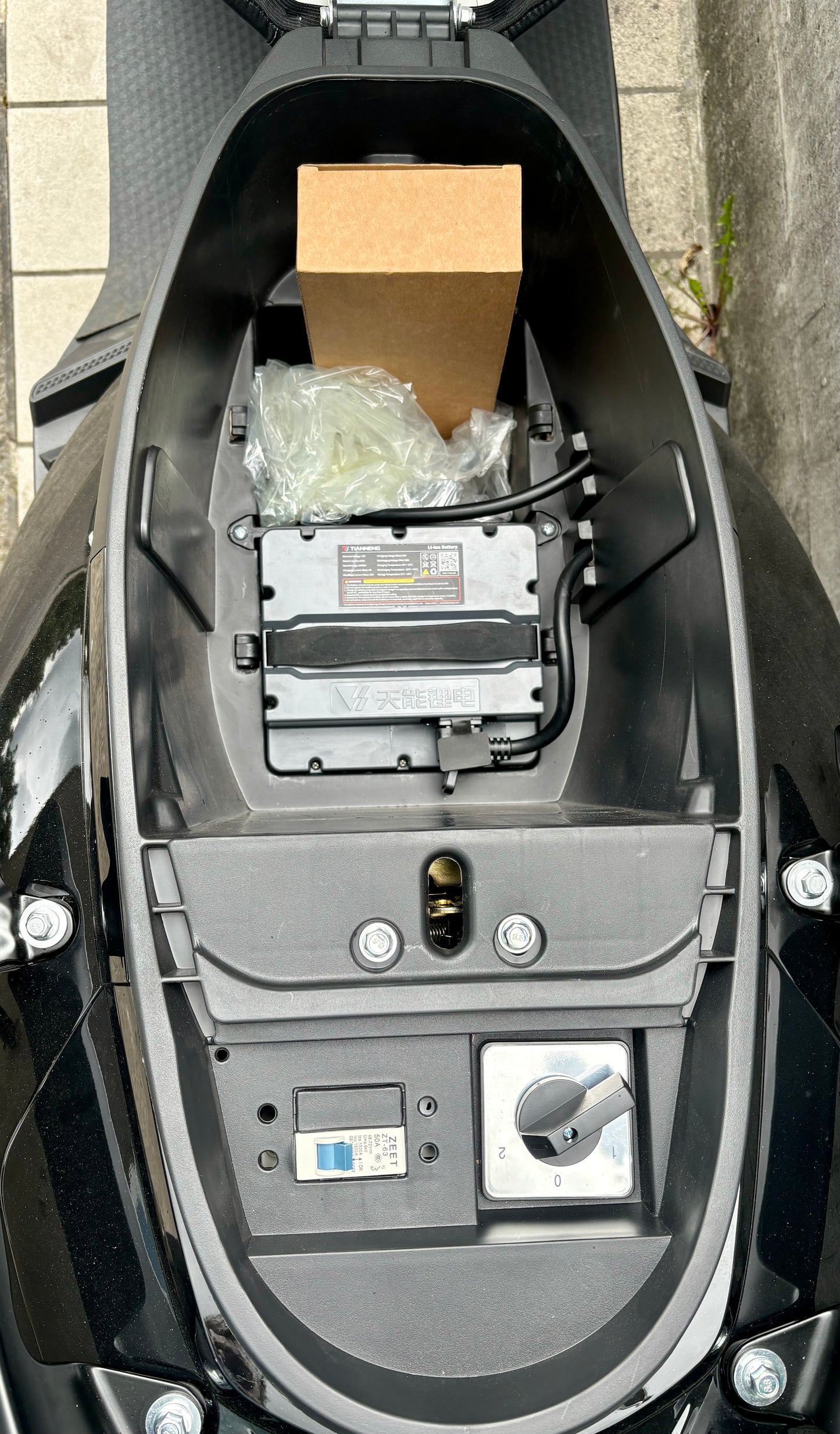 • herausnehmbarer 9 kg-schwerer Lithium-Ionen-Akku ( LiFePO4, 72V/20Ah-Akku)